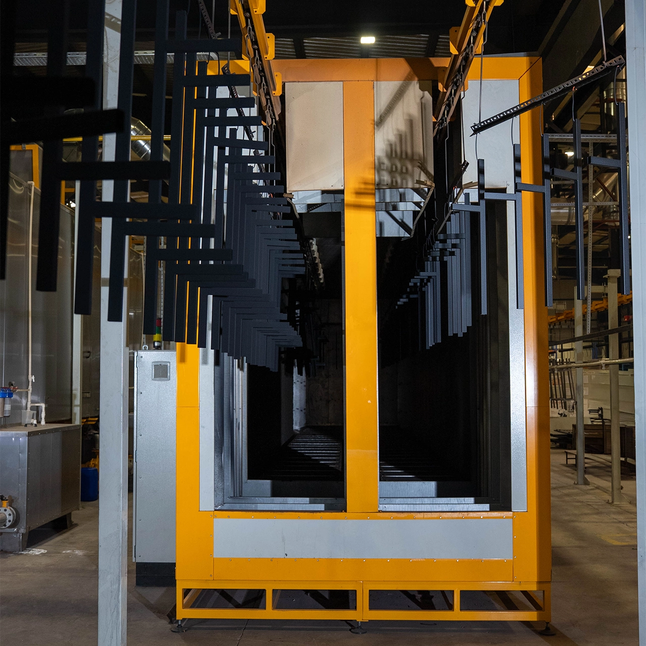 Kaymet Metal, yüzey kaplama konusunda yüksek kalite ve çeşitlilik sunarak sektöründe liderliğini pekiştirir. Son teknoloji statik toz boya ve emaye tesisleri ile her türlü yüzey kaplama ihtiyacına en uygun çözümleri sunar. Elektrostatik toz boya tesislerinde, 2000 mm x 600 mm ile 2000 mm'ye kadar geniş ürünler üzerine yapılan kaplamalar, ürünlere dayanıklılık ve estetik katarken, aynı zamanda uzun ömürlü kullanım sağlar. Toz boya işlemleri, yüksek kaliteyi ve düzgün yüzey kaplamayı garanti eder.